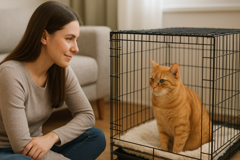 ケージ内にはトイレや食事場所を設置し、猫が快適に過ごせるようにします。