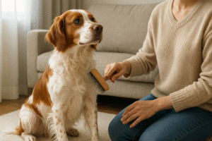 ブラシの種類やトリミング頻度、掃除のコツなど詳しいブリタニースパニエルの抜け毛対策はこちらで解説しています。
