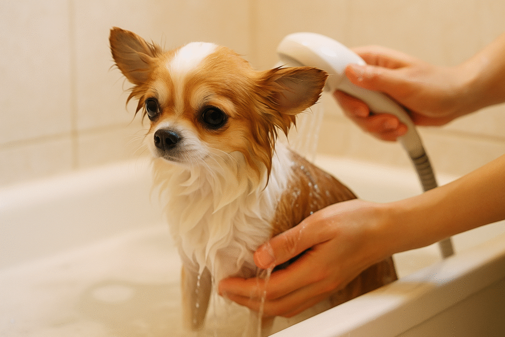 特にスムースコートのチワワは被毛が短く、直接お湯が皮膚に当たりやすいため、少し低めの37〜38℃が安心です。