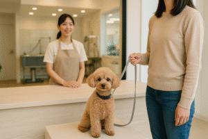 初めて利用するサロンでは、予約時に「初トリミングであること」「月齢」を伝えておくと、子犬向けの優しいメニューにしてもらえることがあります。