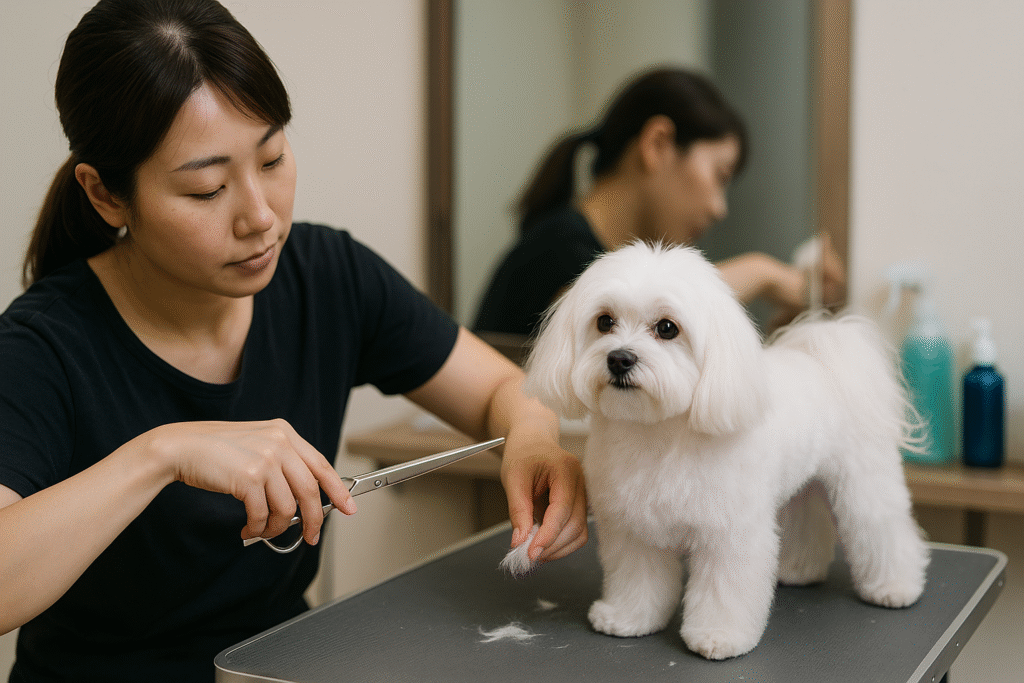 顔まわりを触る練習、足先・ブラッシング・ドライヤー音に慣れる練習をしておくと、トリミングが「怖いこと」ではなくなり、将来的なストレスもぐっと減らせます。