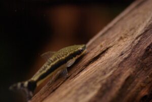 オトシンクルスは小型のナマズの仲間で、水槽のガラスや水草についたコケを食べる魚として知られています。温和な性格で混泳にも向いています。