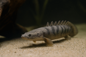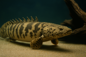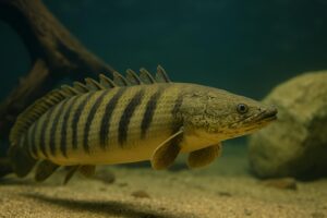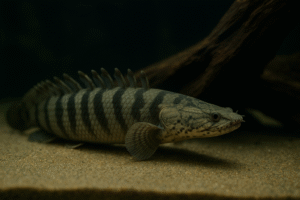 硬い鱗と原始的な胸びれを持ち、水面から空気呼吸もできるという独特な特徴を持っています。